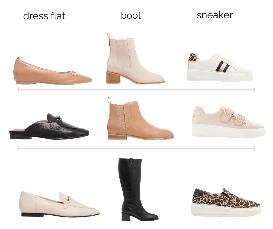 Once you have a solid idea of the above, I suggest looking at three pairs of shoes as a starting capsule for your winter wardrobe update: